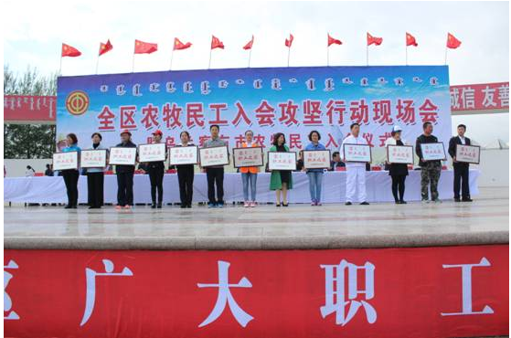 6月14日,全區(qū)農(nóng)牧民工入會攻堅行動現(xiàn)場會暨烏蘭察布市農(nóng)牧民工入會儀式在我市舉行。我公司組織30人的方隊參加了入會儀式。期間,自治區(qū)人大常委會副主任、總工會主席杭桂林,自治區(qū)總工會黨組書記、副主席崔明龍,自治區(qū)總工會副主席王麗紅,我市領(lǐng)導(dǎo)張琛、李建平、楊國文、王增強(qiáng)、王國相、于生龍,和各盟市工會分管主席、主管部門部長,各盟市黨委政府所在地的區(qū)(市、旗)總工會主席,各自治區(qū)產(chǎn)業(yè)工會負(fù)責(zé)人,自治區(qū)直屬機(jī)關(guān)工會工委負(fù)責(zé)人,區(qū)總相關(guān)部門負(fù)責(zé)人,市各旗縣市區(qū)工會負(fù)責(zé)人及部分市直基層工會負(fù)責(zé)人100余人來我公司進(jìn)行了實(shí)地觀摩考察。