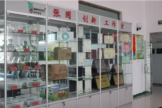 創(chuàng)新工作室建立在馬鈴薯研究院,以自治區(qū)勞動模范總經(jīng)理張國命名。工作室設(shè)立了成果展示柜,集中展示了工作室成立以來總經(jīng)理張國和我公司在馬鈴薯領(lǐng)域科研發(fā)展領(lǐng)域方面取得的創(chuàng)新成果和獲得的榮譽。工作室組織機構(gòu)、工作計劃、目標、內(nèi)容、簡介、科研課題項目管理制度、管理辦法全部上墻,分別掛牌成立了實驗準備室、病理鑒定室、理化分析室、育種資源室和脫毒培養(yǎng)室。